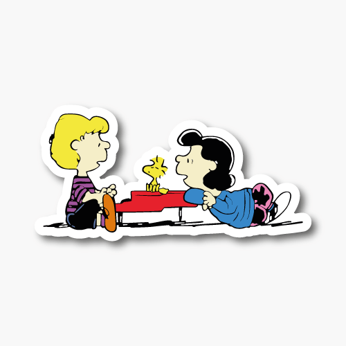 Snoopy. Schroeder y Lucy con Woodstock en el piano