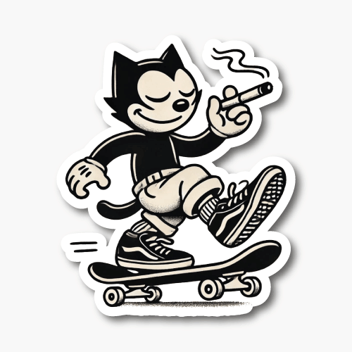 El gato Félix en skate y fumando