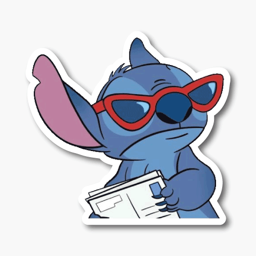 Stitch con gafas de sol y cartas
