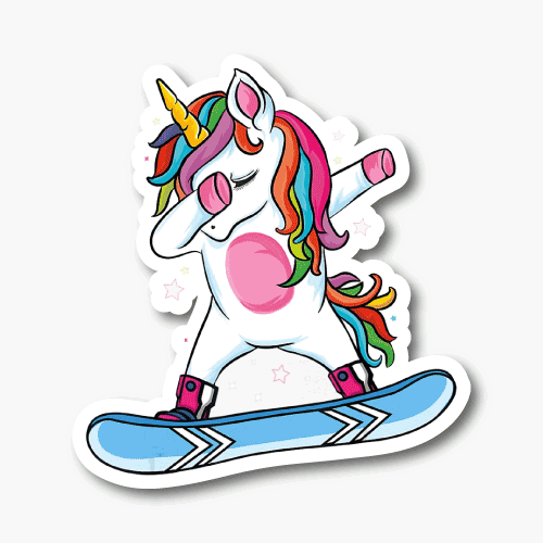 Unicornio haciendo snowboard frotando